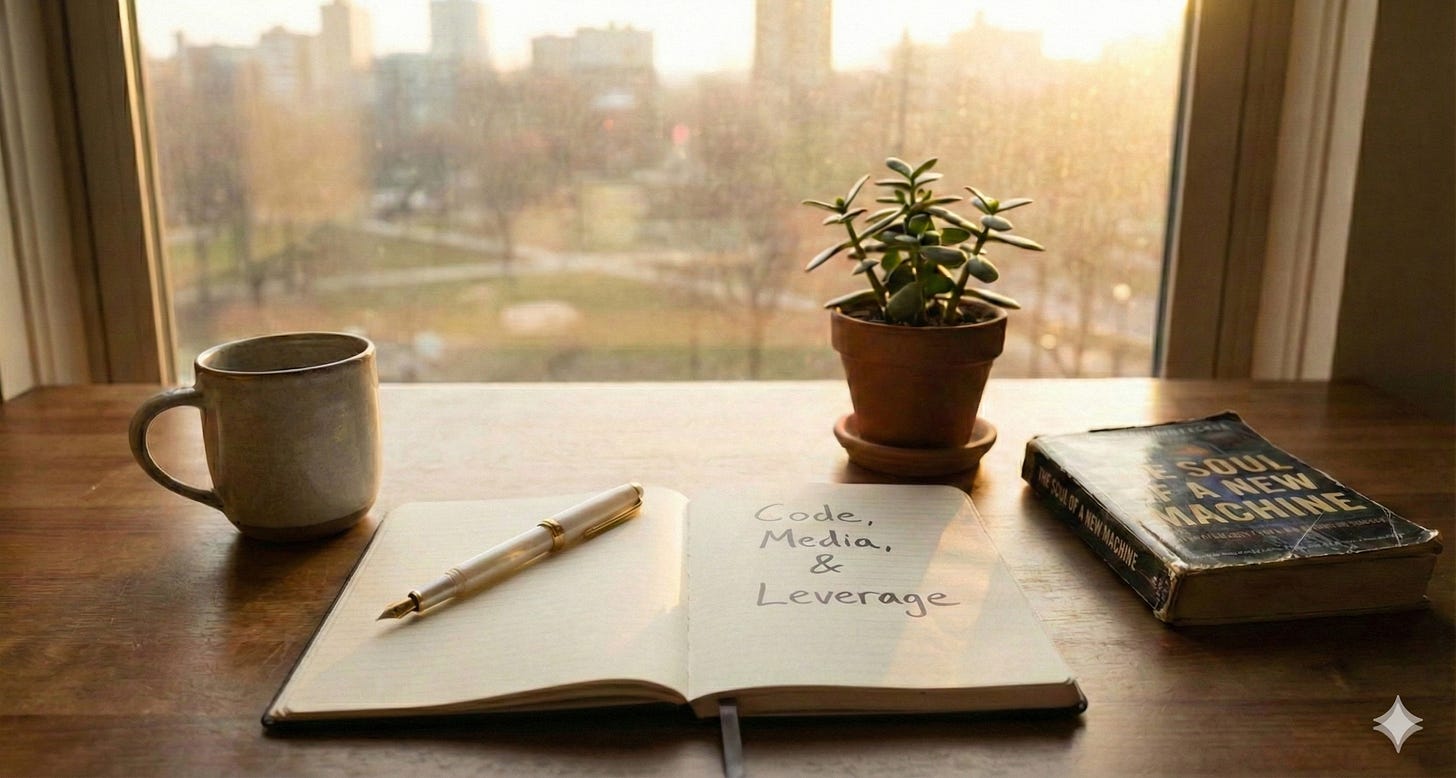 So I stopped treating my work like it was in permanent stealth mode. I started sharing learnings, partial ideas, architectural tradeoffs, and even things I hadn’t fully figured out yet. I leaned heavily on a framework popularized by Naval Ravikant: Code and Media as permissionless leverage.